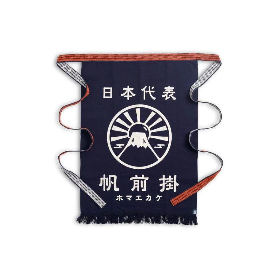 Materials: 100% cotton [/accordion] Care and Use [/title] Care: Wash cold separately. Don’t tumble dry. [/accordions-break]An apron with a centuries-old history.[/banner_heading]Maekake have been worn by pub workers and craftsmen since the 14th century, typically showcasing a business’ logo across the front. They’re made from thick cotton and feature a fringe across the bottom, which hearkens back to the ornamental garments worn by sumo wrestlers. [/banner-text-break]Tie it like so: Rest the apron at the top of your pelvis. Breathe in deeply, then release your breath lightly. Wrap the belts tightly across your back, bringing them around to the front. Tie the belts securely in front below the navel—this positioning is thought to focus and balance energy as well as offer back support. [/how-to-use-break]Do not use bleach or fabric softener. Do not tumble dry. Do not wash in warm water. Wash separately from whites, as the dye may transfer onto other fabrics. May shrink slightly after wash due to the nature of the fabric. Suitable for waist sizes up to 37 inches.
