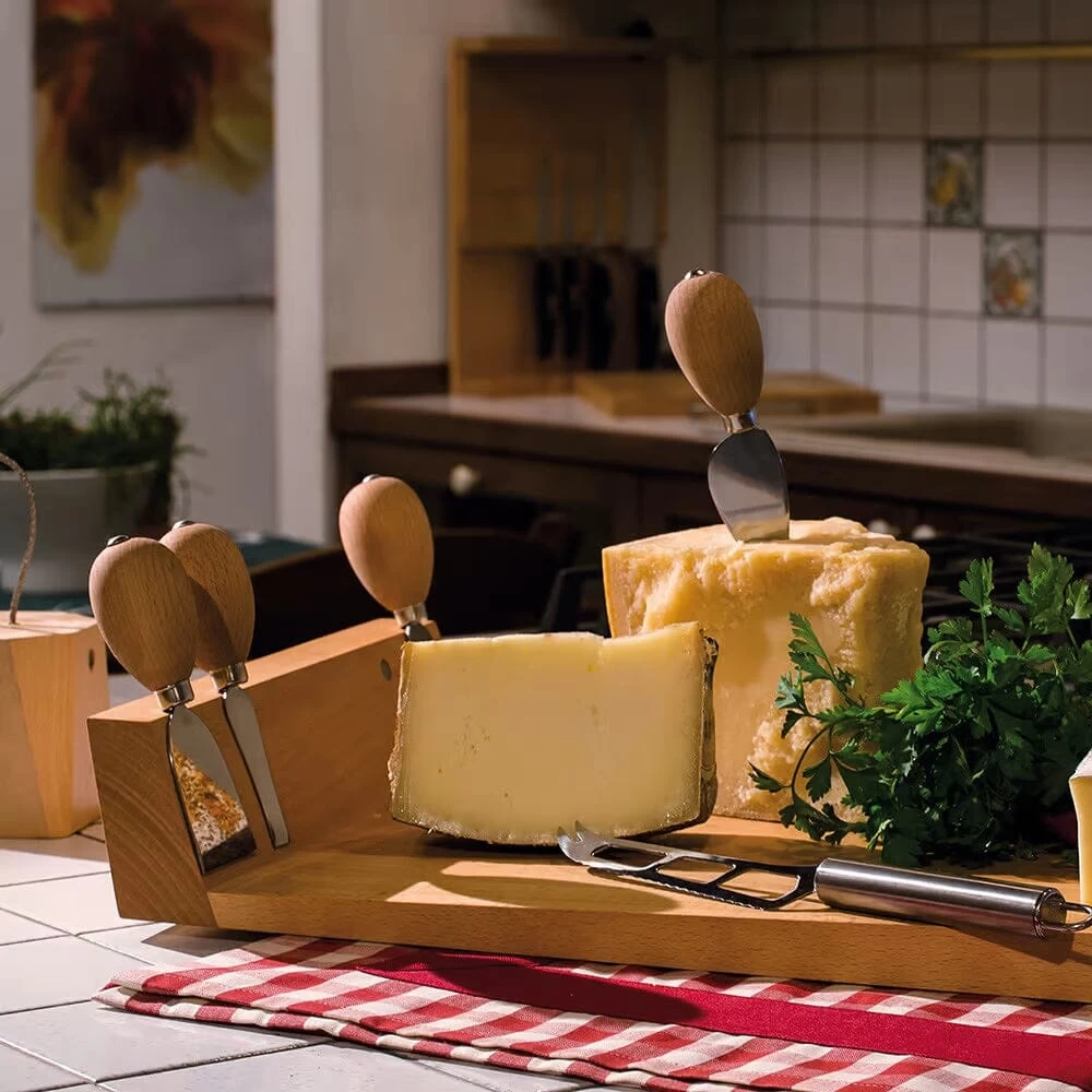 The 4 magnets (2 magnets on the small board) allow the safe positioning of 4 cheese knives (not included with purchase) or a slicing knife.