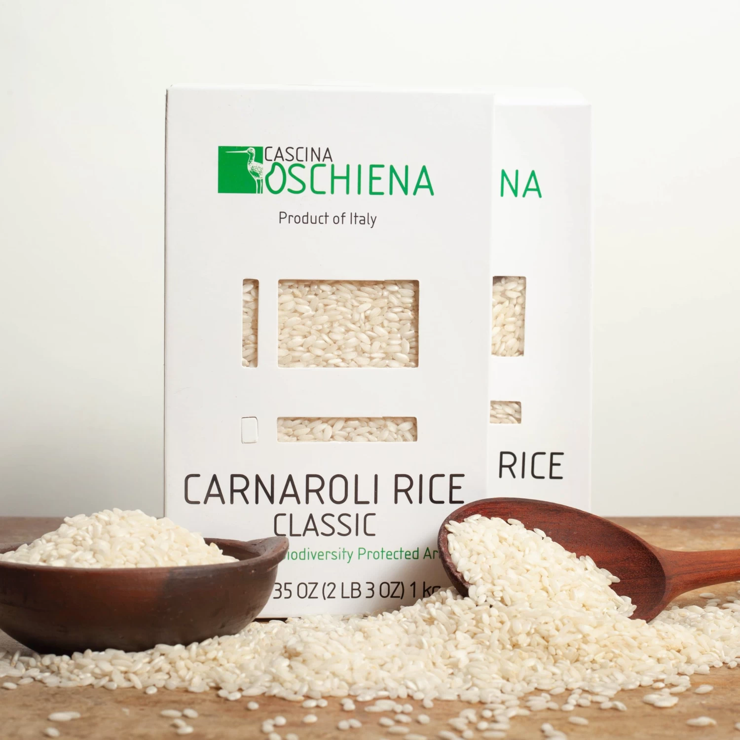 Place of Origin: Italy[/accordions-break] We tried three different brands of carnaroli rice, and Cascina Oschiena was the clear winner—with a fluffy, creaminess to their grains without the gumminess that often plagues similar rices. And it’s integral to a proper Italian risotto.[/banner_heading]When risotto is made well, it is called “all’ondo,” which means “like a wave.” It should be creamy and thick yet loose, with enough creamy density to create waves when stirred rapidly. Arborio is much more fussy and can grow mushy and loose its “wave” due to the smaller grains, while carnaroli has a superior toothsome texture that’s much more forgiving for the home cook. Plus, the company cultivates their grains in a biodiversity protected area, planting over 5,000 trees and bushes, restoring natural springs and protecting area wildlife.[/banner-text-break] This rice is perfect for a creamy risotto, like our Saffron Risotto and Risotto with Sausage and Arugula. Its chubby texture also works well in soups and grain salads. The rice absorbs flavors well, too, so in soups it will take on some of the broth’s flavors, and in a salad it will readily absorb the dressing. Try it in our Vietnamese Rice Soup with Chicken (Chao Ga) or our Soupy Rice with Chicken, Bok Choy and Mushrooms (Pao Fan). [/how-to-use-break]
