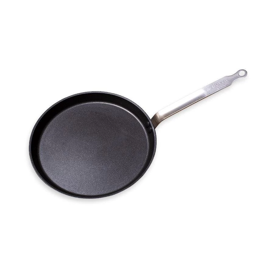 Historic French company’s Choc Intense line of nonstick pans use the latest generation of nonstick coating—designed to have a 50% longer lifetime than other models—so they release food easily and are a breeze to clean with a soft sponge. This Crepe Pan has shallow sides and a wide surface area that make it easy to slip a spatula under large, flat foods—not only crepes but also sandwiches, quesadillas and pancakes. We also like it for caramelizing onions, especially since the low sides prevent steam from gathering. Plus, the robust forged aluminum walls and induction-friendly stainless steel bottoms are fast-heating and provide even heat distribution, while the sturdy triple-riveted stainless steel handles and matte black finish look neat and attractive. De Buyer even includes a cloth bag with each pan to protect the nonstick surfaces during storage, so you can stack Choc Intense cookware without worrying about scratching the material.
