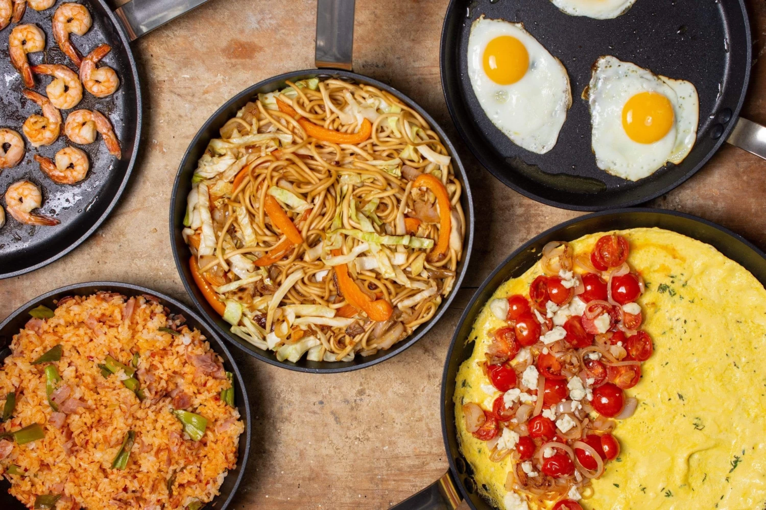 Historic French company’s Choc Intense line of nonstick pans use the latest generation of nonstick coating—designed to have a 50% longer lifetime than other models—so they release food easily and are a breeze to clean with a soft sponge. These Round Frypans also feature robust forged aluminum walls and induction-friendly stainless steel bottoms, so they are fast-heating and provide even heat distribution when sautéing and searing. The attractive matte black pans are weighty but not cumbersome, with sturdy triple-riveted stainless steel handles. De Buyer even includes a cloth bag with each pan to protect the nonstick surfaces during storage, so you can stack Choc Intense cookware without worrying about scratching the material.