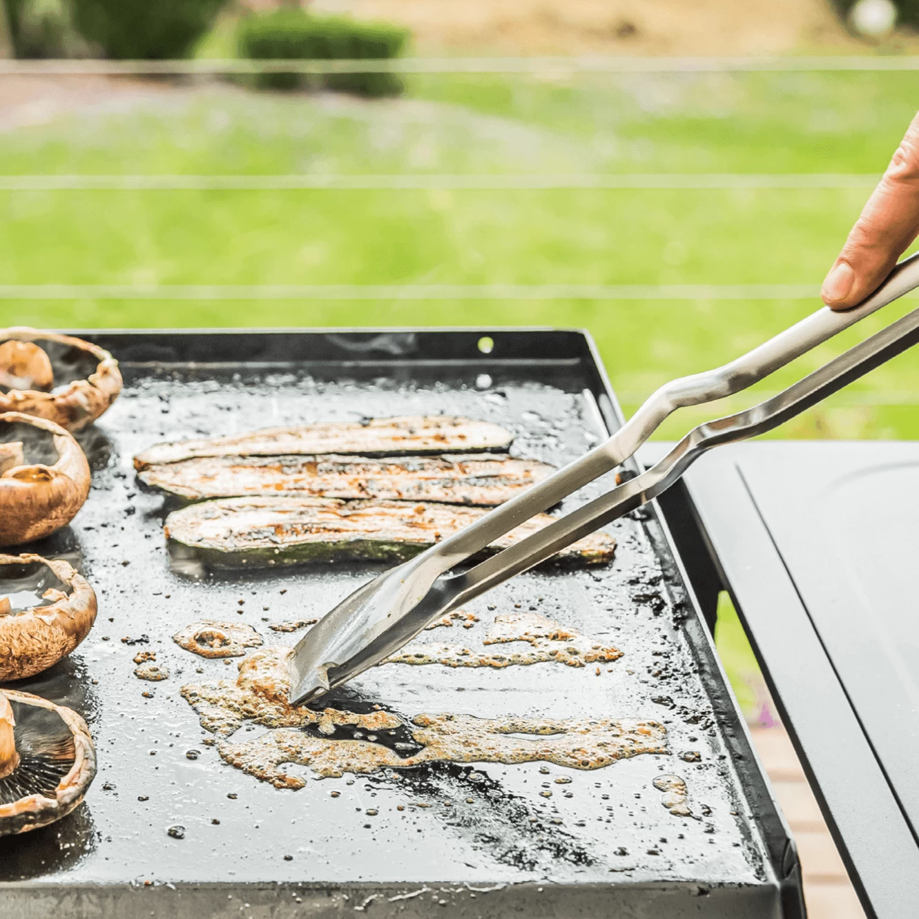 Dreamfarm’s BBQ Clongs are stainless steel click-lock tongs that are designed to pick up anything you want to grill. Use the flat tip and study arms to cook, flip, scrape, serve, clean and pick up even the smallest pieces of food; the Clongs also come with a spike to prick sausages, which we found useful for moving food around the grill, as well as a link cutter to detach sausages or cut through their skin. The button at the end of the Clongs opens and closes them easily—and locks them in two positions—and the bend in the handle keeps the tips off of surfaces (like all of Dreamfarm’s barbecue tools), to keep your grill clean and prevent cross-contamination.