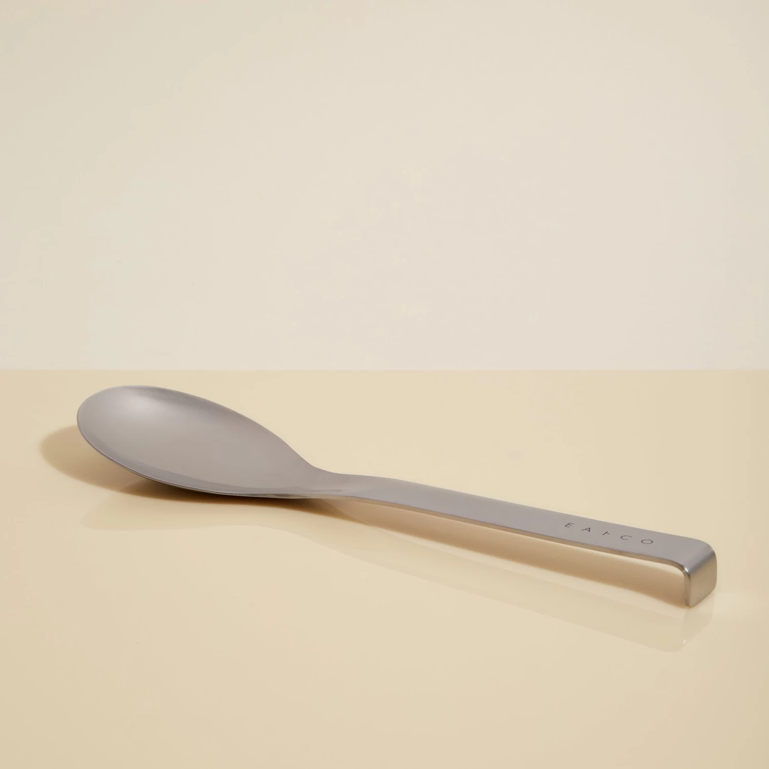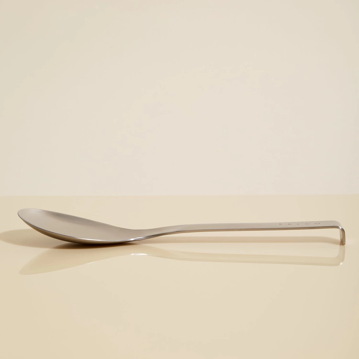 This Japanese-designed serving spoon is compactly sized and made of high-grade stainless steel. The handle features a brilliant detail on the end: a down-turned lip that can hang on to the rims of bowls or containers, keeping the spoon from slipping in.