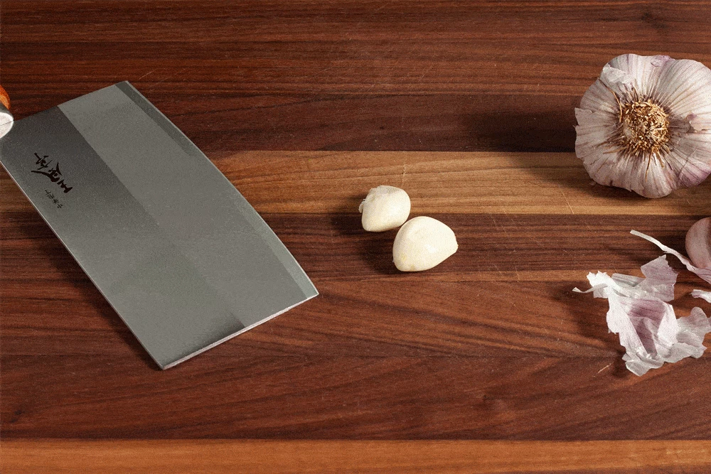Every kitchen should have a Chinese-style cleaver, whose tall, heavy-duty blade and forward-heavy balance do most of the work for you when chopping big batches of vegetables and mincing meats or herbs. We found an excellent model from Japan that, unlike most flat-bellied cleavers, has a slightly curved edge similar to a European-style chef’s knife, so American home cooks will find it easier to use. Plus, the barrel-shaped handle can you more control than a standard shape.