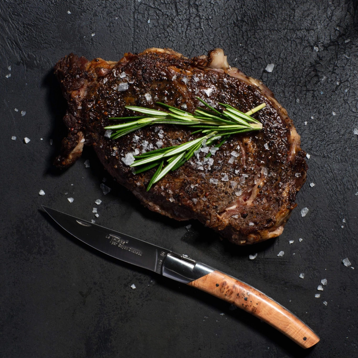 Place of Origin: France[/accordion] Care and Use [/title] Care: Hand-wash wooden and acrylic handles articles with a soft sponge. Do not leave in prolonged contact with water or a heat source. Wipe as soon as washing is completed. Store in a dry place. [/accordions-break] Among their many high-quality products, Goyon-Chazeau produces their own line of Laguiole-style knives. [/banner_heading] An area synonymous with cutlery, the tiny town of Laguiole has a reputation well outside of France for its craftsmanship when it comes to flatware. Laguiole-style knives are easy to recognize: They’re emblazoned with an iconic bee emblem on the handle. Once the essential tool of the region’s shepherds and farmers (each region had its own unique style of utility knife), Laguiole knives have become popular throughout the world—including at Michelin-starred restaurants–and the iconic style is now produced in other parts of France. You can find the traditional stylized bee on all of Goyon-Chazeau’s Laguiole line products, though all of the company’s products uphold the same exquisite design and craftsmanship.[/banner-text-break] [/how-to-use-break] Hand-wash wooden and acrylic handles with a soft sponge. Do not leave in prolonged contact with water or a heat source. Wipe as soon as washing is completed. Store in a dry place.