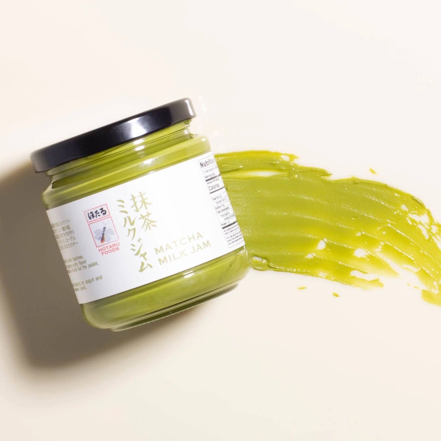 Milk jam, like dulce de leche, is a thickened mixture of dairy and sugar. This version has matcha green tea powder mixed into it for a unique and delicious twist. The luxurious and spreadable texture is paired with a slightly grassy aroma that hints at matcha’s earthiness. We love the bright, vegetal, and slightly bitter taste that finishes sweet and nutty. And the beautifully vibrant green color from the matcha doesn’t hurt either.