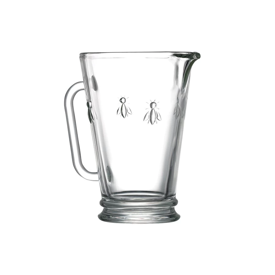 From 500-year old French glassmaker La Rochere, the oldest continuously running glass factory in Europe, comes this beautiful and durable molded glass bee pitcher. Adorned with the Napoleonic bee, known as the symbol used to represent power and prestige during his reign, use this all-purpose pitcher for easy and stylish entertaining. Outfitted with a graceful handle for a steady pour and a generous 33-ounce capacity, this pitcher will make a great addition to your dining table.