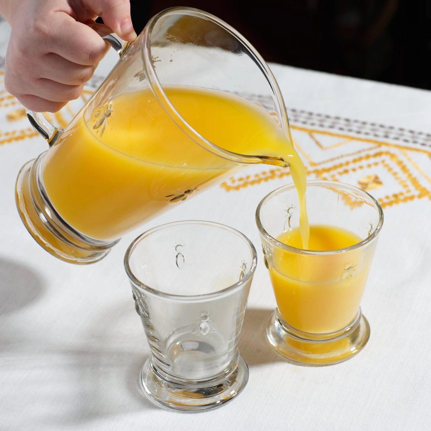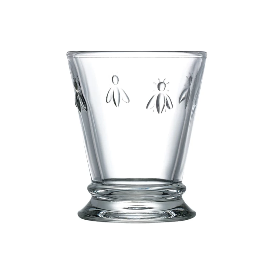 From 500-year old French glassmaker La Rochere, the oldest continuously running glass factory in Europe, comes these beautiful and durable molded glass bee tumblers. Adorned with the Napoleonic bee, known as the symbol used to represent power and prestige during his reign, use these casual yet elegant tumblers for easy and stylish entertaining. These beautiful and durable molded glass bee tumblers come in a set of six. These tumblers have a 9-ounce capacity and will look striking on any table for entertaining but are casual and sturdy enough to use every day.