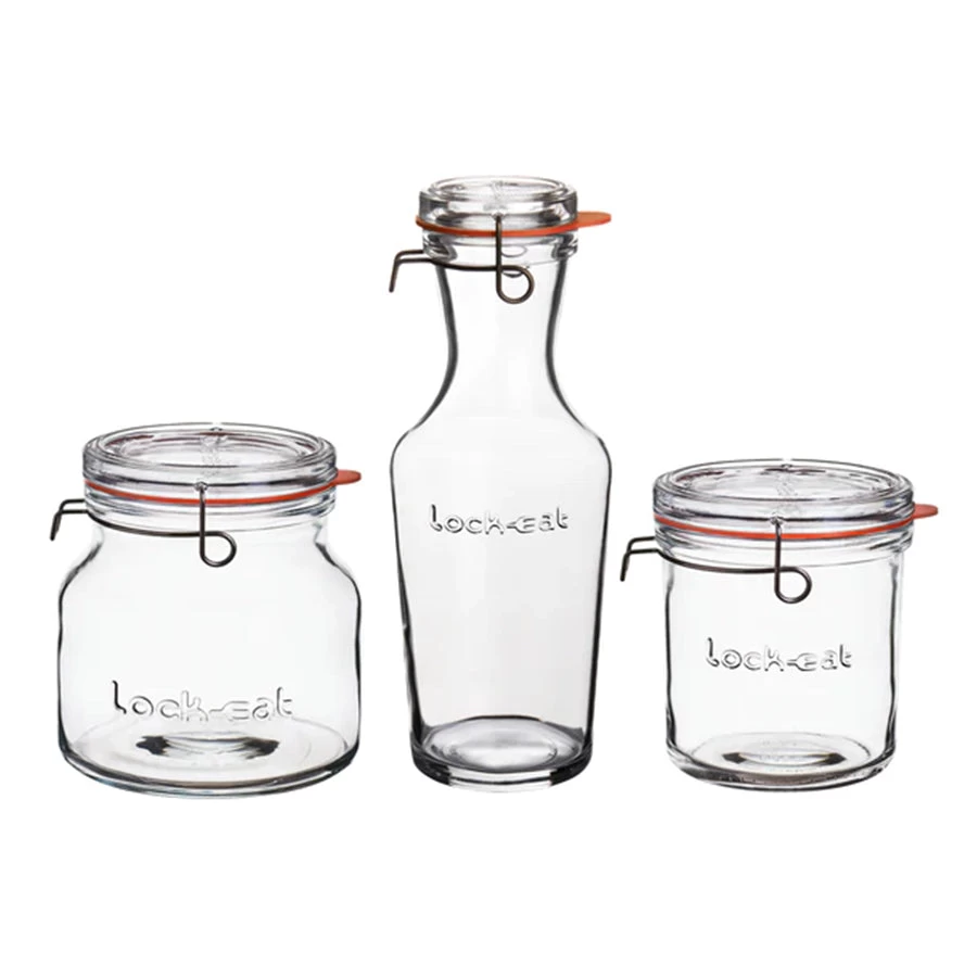 Sold in a set of 3, these jars from Luigi Bormioli’s Lock-Eat collection are functionally designed for canning and preserving. Made of sturdy glass, they work whether you’re using a heat treatment (boiling or potting) or pickling in oil, brine or a dry cure. Hermetically seal the contents of each Lock-Eat jar by deploying the glass lid, food-safe rubber gasket and stainless steel clamp, which together create an air-tight seal. Even though the jars are designed for storage and food preservation, they’re attractive enough to use at the table, bar or on your countertops. For serving (and for easier cleaning), simply remove the lid, and you have an attractive piece that transitions easily to the table.