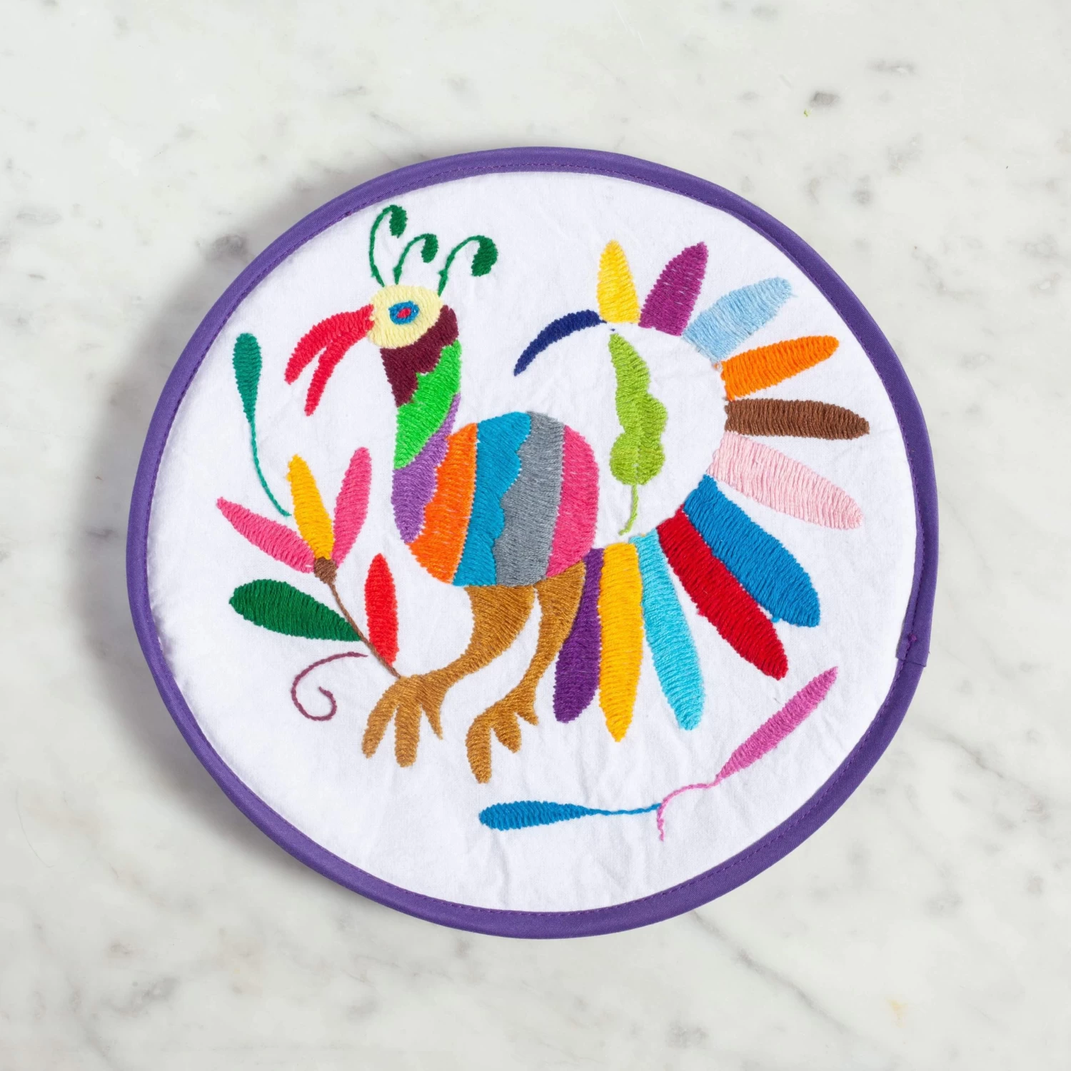 Care: Hand-wash only [/accordions-break]These stunning tortilla warmers are hand-embroidered in Hidalgo, Mexico by artisans.[/banner_heading]They’re adorned with traditional Otomí designs, featuring flora and native fauna such as flowers, rabbits, birds and deer. All designs are one of a kind.[/banner-text-break]Use to insulate tortillas, naan and other flatbreads.[/how-to-use-break]All designs are one of a kind.