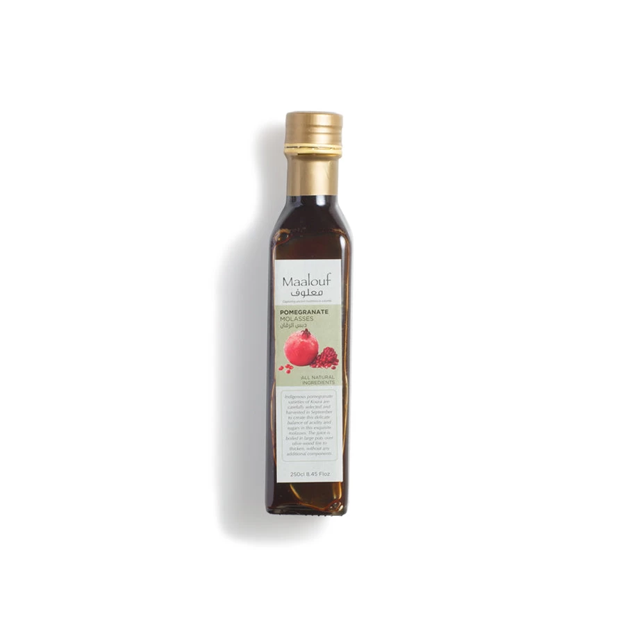 Pomegranate molasses, an indispensable ingredient in many cuisines from the Eastern Mediterranean to Central Asia, is the result of boiling pomegranate juice until it condenses to a concentrated sweet-tart powerhouse. Each bottle of producer Chafic Maalouf’s small-batch version, exclusively sold at Milk Street, is made from the juice of 5 kilos of Lebanese pomegranates using methods that have been practiced for generations. Unlike more common thicker versions, this molasses has a thinner viscosity that spreads rather than sticks when poured, combined with the perfect balance of sugars and acidity. It carries multiple layers of complex aromas and flavors ranging from smoke, tobacco, balsamic, citrus and berries, all engulfed in a subtle, well-rounded sweetness.