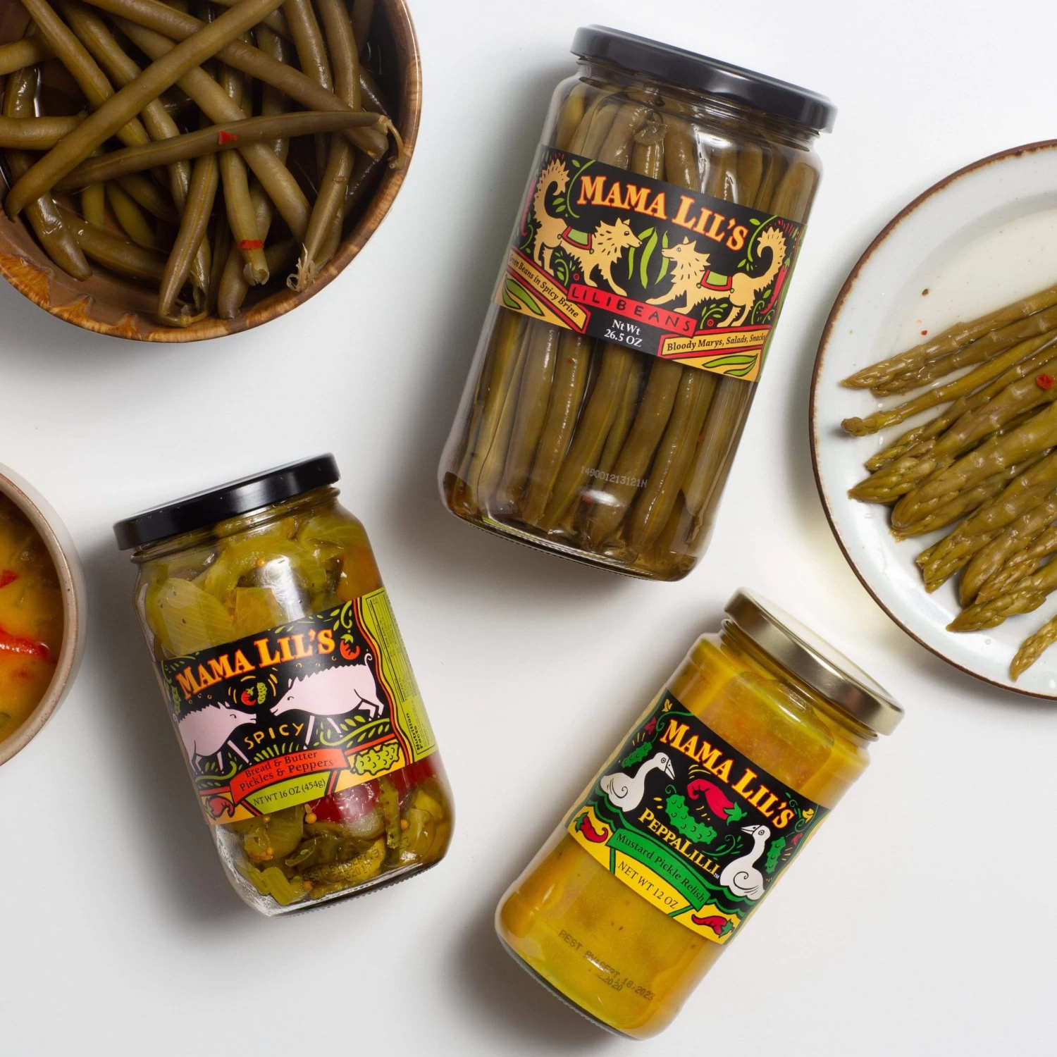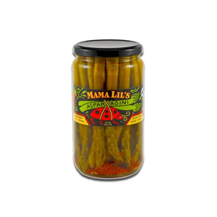Place of Origin: Portland, OR[/accordions-break] Every summer, Howard Lev’s mother, Lil, planted a crop of Hungarian Goathorn peppers at their Youngstown, Ohio, home. [/banner_heading] Come harvest, she’d pickle and marinate them in a vibrant mixture of oils and aromatic spices based on a recipe given to her by a Serbian friend. They were the family’s ubiquitous condiment, a jar of the sweet-and-spicy mix always at the center of the table. Later on, Lev’s frustration with being unable to find anything comparable eventually prompted him to launch Mama Lil’s, which sells his mother’s recipe. Unlike similar jarred peppers, which typically are picked and pickled when young and green or yellow, Lev uses peppers that have ripened to orange and red, allowing their natural sweetness to better balance their fiery kick. [/banner-text-break]While these are already a great snack or veggie platter addition as they are, we especially love the crunch factor these pickled asparagus give to decadent sandwiches. Toss them into salads, too—both leafy and mayo-based—for a mouth-watering tang and crisp, refreshing bite. And a spear plunked into a Bloody Mary is always a good idea.[/how-to-use-break] KITCHEN NOTES