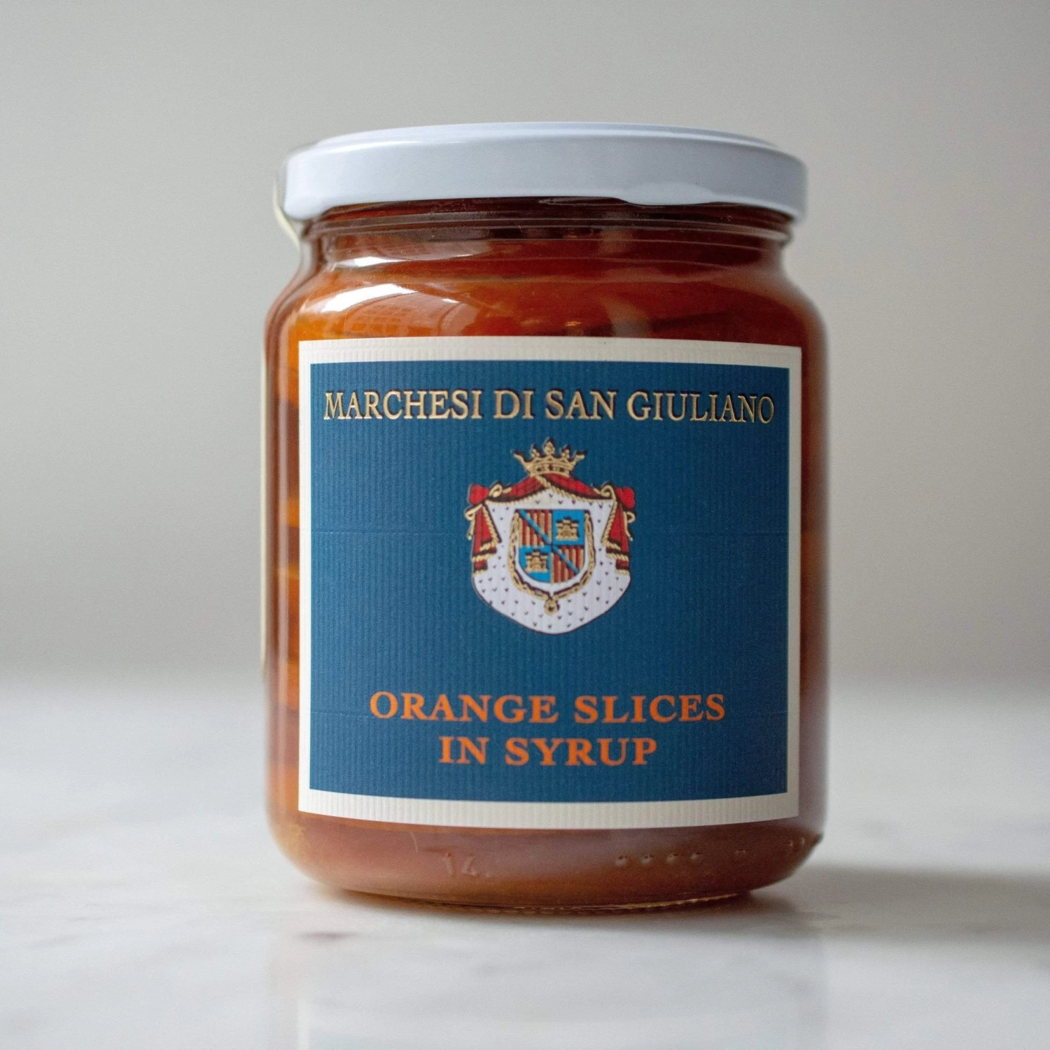 [/description-break] Ingredients [/title]Ingredients: Organic blood oranges, organic cane sugar, organic brandy [/accordion] Specifications [/title]Net Weight: 460 gramsPlace of Origin: Sicily, Italy[/accordions-break] To these orange slices in syrup, organic blood oranges are hand-picked from the producer’s own orchards, sliced finely with the rind still on, then briefly blanched to remove some of their bitterness and carefully layered in jars. [/banner_heading] The orange slices are covered with a reduction of orange juice, sugar and a touch of brandy—no pectin or artificial sweeteners—which contributes a vanilla-like roundness as well as sugary depth and richness. In addition to their rich flavor, we love the amazing texture of these orange slices, with a wonderful contrast between the silky pulp and surprisingly tender rind, which can be cut through with a fork. [/banner-text-break]