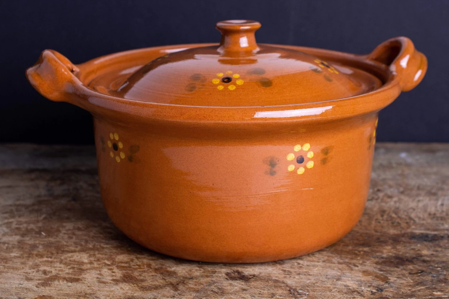 This traditional clay cazuela from Hidalgo, Mexico, is more lightweight than Pyrex, more attractive than either glass or metal cookware, and has nonstick properties thanks to its beautiful glazed finish—which also makes it easy to clean. Use this 3.5-quart pot as you would a Dutch oven, especially for recipes that require cooking in the oven, such as our Roman Braised Beef with Tomato and Cloves—the gradual, steady heat of the terra cotta will help with even cooking. We also like the subtle ventilation holes in the lid, which are flawlessly disguised by the painted floral pattern. They allow moderate evaporation so you can reduce soups and stews without worrying about food sticking or scorching to the bottom of your pot. Each piece is handcrafted by specialized artisans and takes between 15 and 20 days to produce, from mining local clay to polishing the dishes using volcanic rock. And not only will it add an attractive, authentic touch to your table, the cazuela is also certified food-safe, whereas many other brands of earthenware are made with lead. Because the clay is finely ground, the pot requires very little seasoning before first use—simply bring water to a boil in the cookware. As with all clay cookware, the pieces should not be exposed to extreme temperature shock. For instance, let a hot pot cool to room temperature before running under cold water to avoid cracking.