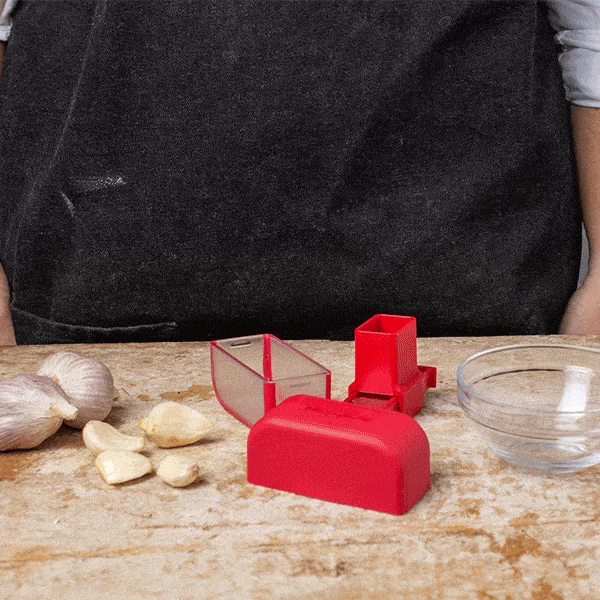 And it’s not just efficient—thanks to Microplane’s thoughtful design, it’s also incredibly user-friendly: Simply attach the chute to your cutting plate of choice, then position both in the clear bottom cup. Add the peeled cloves to the chute and insert the plunger on the top handle into the shoot and then press gently with the lid and slide it back and forth along the cutting plate, watching as expertly-sliced garlic cascades into the cup—ready to be bloomed in butter to toss with pasta or pan-fried into savory garlic chips. When you’re done, use the scraper to sweep your fresh garlic from the cup and into your pan. Thanks to its stainless steel blades, the tool is dishwasher safe for easy cleanup—simply dismantle and toss in the top rack. You won’t have to worry about it’s pieces getting lost in your kitchen drawer either: Nestle the scraper back into the lid and click onto the base with the blades inside to compactly package the parts together.