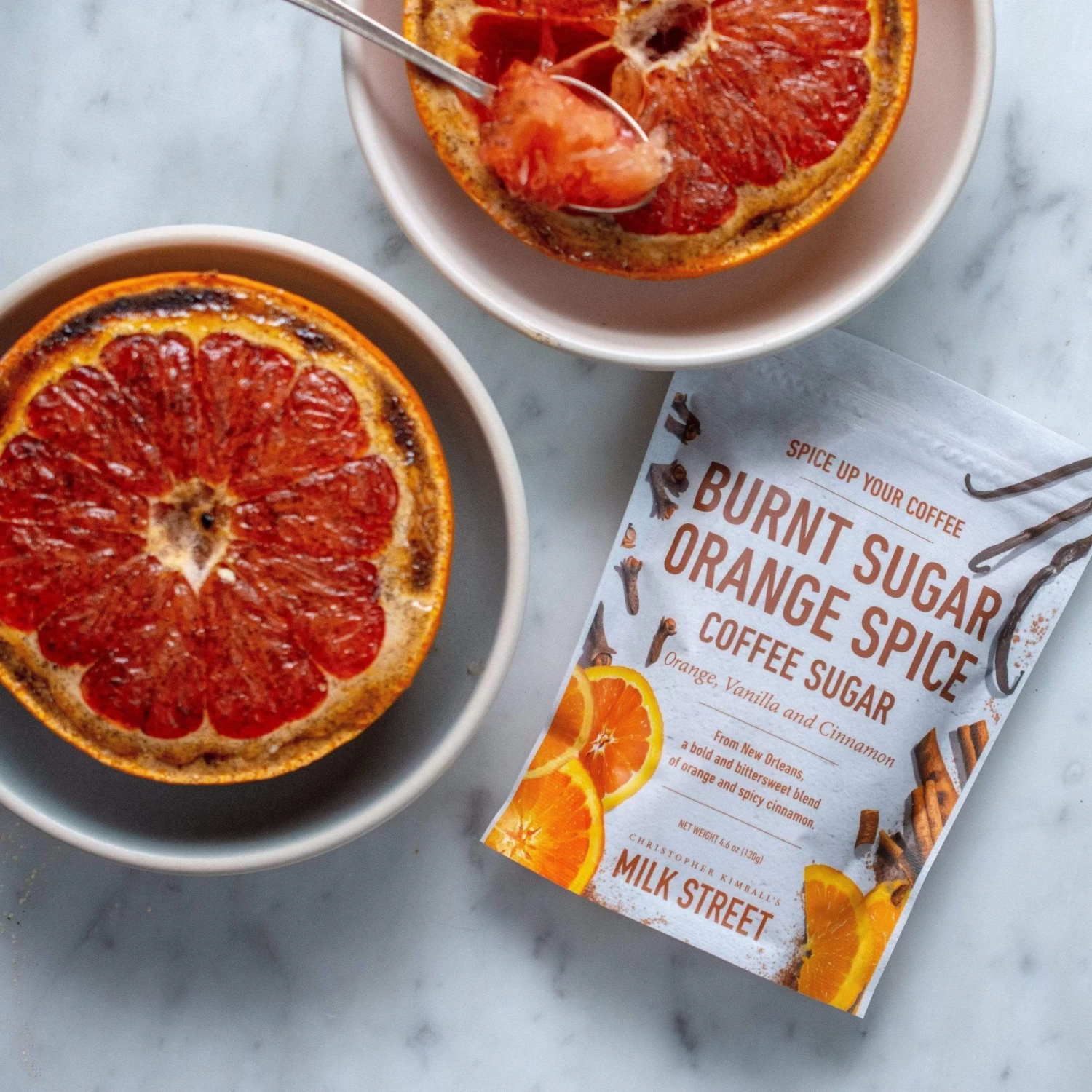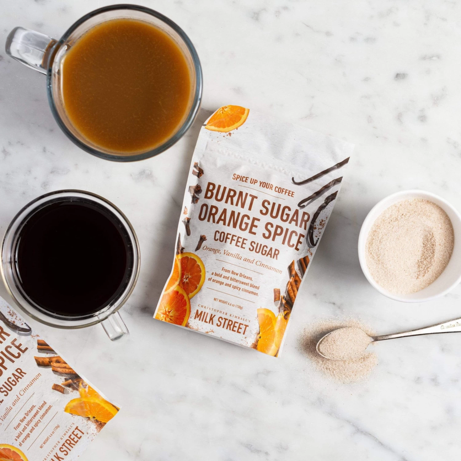 Inspired by café brulot diabolique from New Orleans, our orange-flavored sugar has the warmth of cinnamon and allspice and a subtle smoky aroma.