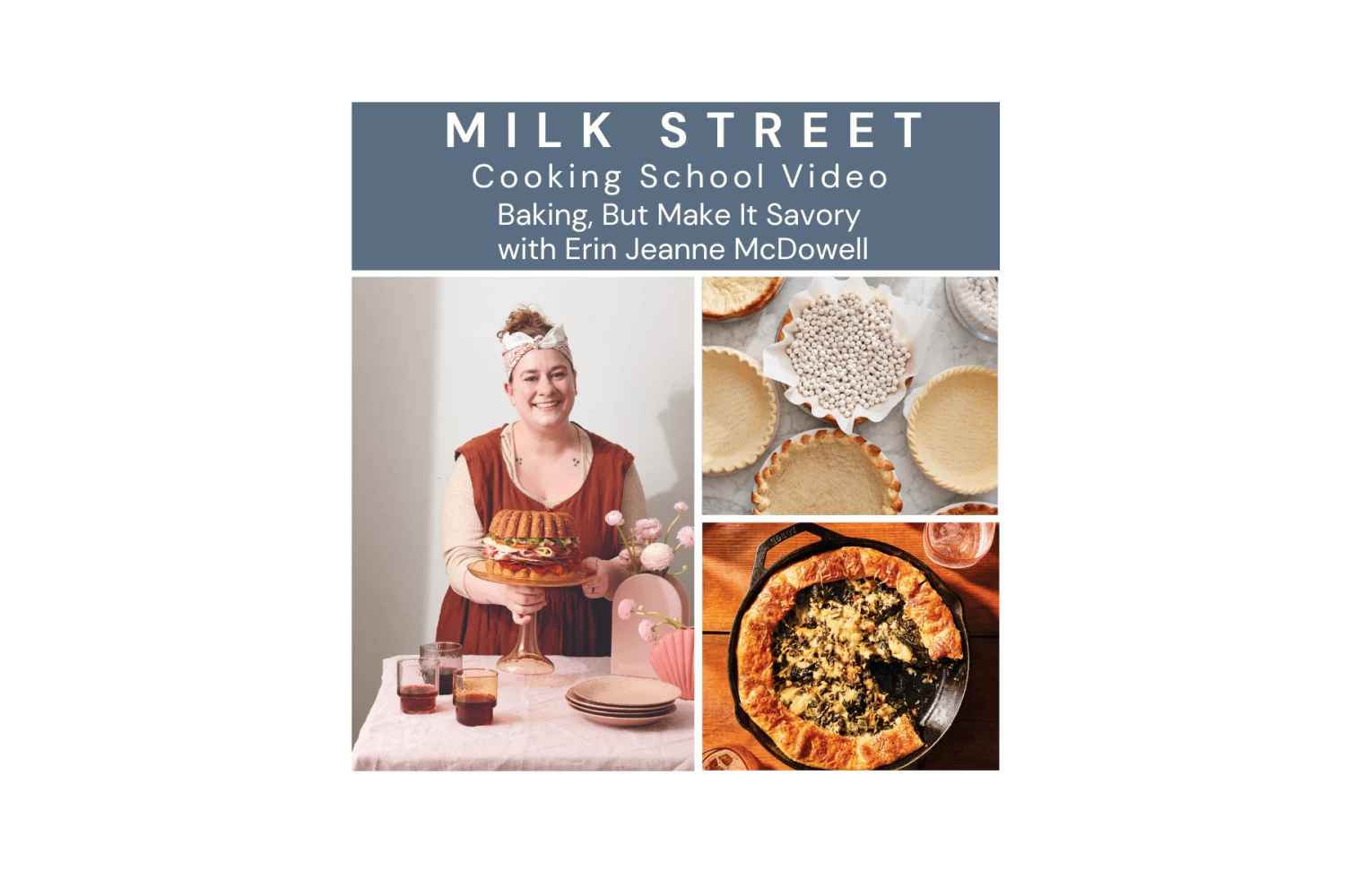 Homemade Bechamel[/accordion] What’s Included[/title]You will receive a .zip file that includes the cooking school video as well as PDFs of the recipe instructions.[/accordion] How to Download[/title]After you purchase your Milk Street Cooking School Video, you will receive an email from the Milk Street Store with the subject line “Your Cooking School Video is Ready for Download.” Within this email there is a link that will direct you to a download page, click download now to download the .zip folder. To unzip the folder, double-click the zipped folder to open it. Please note: your video download file will have an approximate size of 500 MB. [/accordions-break]Erin Jeanne McDowell is an author, recipe developer and award-winning food stylist with specialized focus in baking.[/banner_heading]With her husband, Griffith Day, she is a cofounder of The Back in the Day Bakery in Savannah, Georgia, and coauthor of The Back in the Day Bakery Cookbook. Her first book, “The Fearless Baker,” was named one of the Best Baking Books of 2017 by The New York Times. She’s a regular contributor to New York Times Cooking, Food52 (where she also serves as Baking Consultant at Large), and PureWow. She hosts weekly baking classes on Food Network Kitchen and the series “Bake It Up a Notch” for Food52. Erin has been featured in The New Yorker, New York Magazine, Food and Wine Magazine, Food Network Magazine, and Rachael Ray Magazine. Her work has appeared in The New York Times, The Washington Post, Better Homes and Gardens Magazine, Fine Cooking Magazine, Bake From Scratch Magazine, and Sift Magazine. She lives and works in North Bergen, New Jersey.