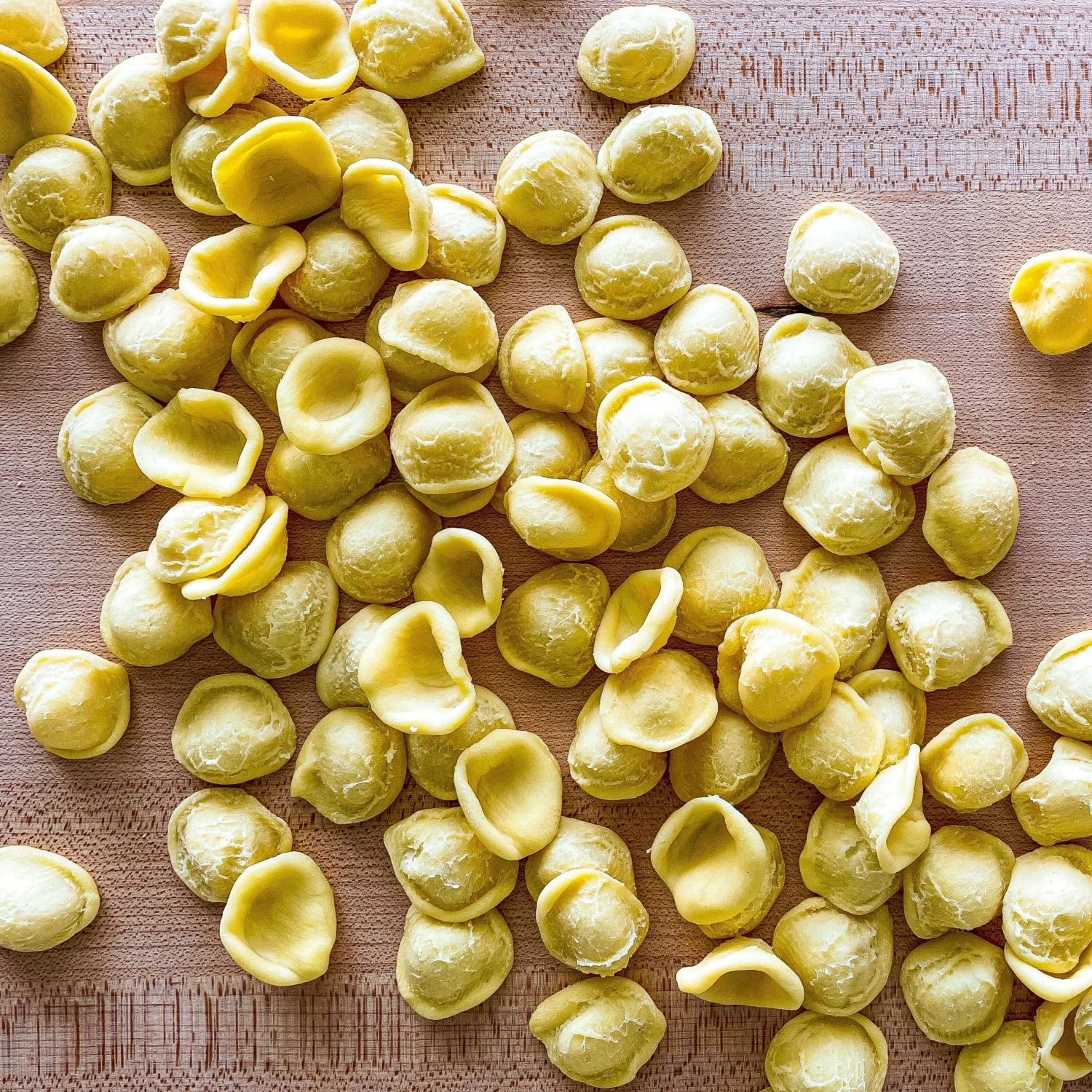Cavatelli. Orecchiette. Gnocchi. Capunti. What do all of these Italian pastas have in common? You can make them by hand with no need for a pasta maker or any special tools. What you do need is a bit of know-how and some expert support. Thankfully, guest chef and Pasta Social Club founder Meryl Feinstein is here to show you the way. With this pre-recorded Zoom livestream class, you’ll learn a single pasta dough recipe that lends itself particularly well to hand shaping. You’ll learn why semolina flour, which is high in gluten and has a slightly nutty flavor, is ideal for these types of pastas. This dough doesn’t include any eggs, meaning that it’s a snap to replicate perfectly time and time again. With our dough ready to go, we turn to the art of shaping. We’ll try our hands at cavatelli, which looks like miniature hot dog buns. You’ll practice orecchiette, the “little ear”pasta of Puglia, perfecting the pressure you need to achieve their concave shape. You’ll get familiar with capunti, the pasta that looks somewhat like a pea pod. Plus,Meryl provides sauce recipes and suggestions so you can dress your hand-formed pastas however you please. If you like playing with your food, this workshop is for you