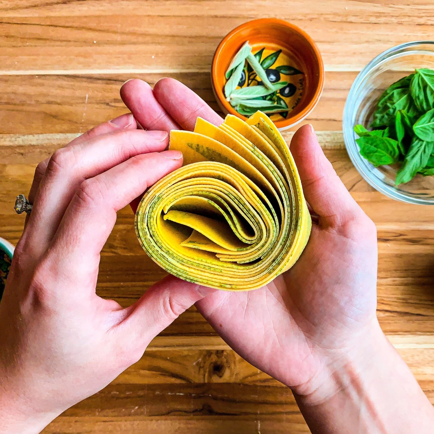In springtime, we all get excited by leafy herbs, some of the first signs of the warming weather. So what if we told you that fresh herbs don’t have to just be a finishing flourish on your favorite pasta dishes—they can be inside the pasta dough itself? Guest chef and founder of Pasta Social Club Meryl Feinstein is the teacher of this pre-recorded Zoom livestream class where you’ll learn to make visually stunning handmade pasta that puts the flavors of spring right into the dough. You’ll learn how to pick the right herbs for the job: fan-shaped parsley is visually stunning, as are frilly dill fronds and aromatic sage. And speaking of dough, you’ll learn Meryl’s go-to recipe, which has just three ingredients. As with most short-ingredient-list recipes, though, you’ll benefit from a professional’s tips and tricks to get it just right. You’ll learn how to transform the dough into flat noodles—like linguine or lasagna sheets—that put the laminated herbs at center stage. Plus, we provide tips for great sauce pairings and advice on how to store and save your homemade pasta.