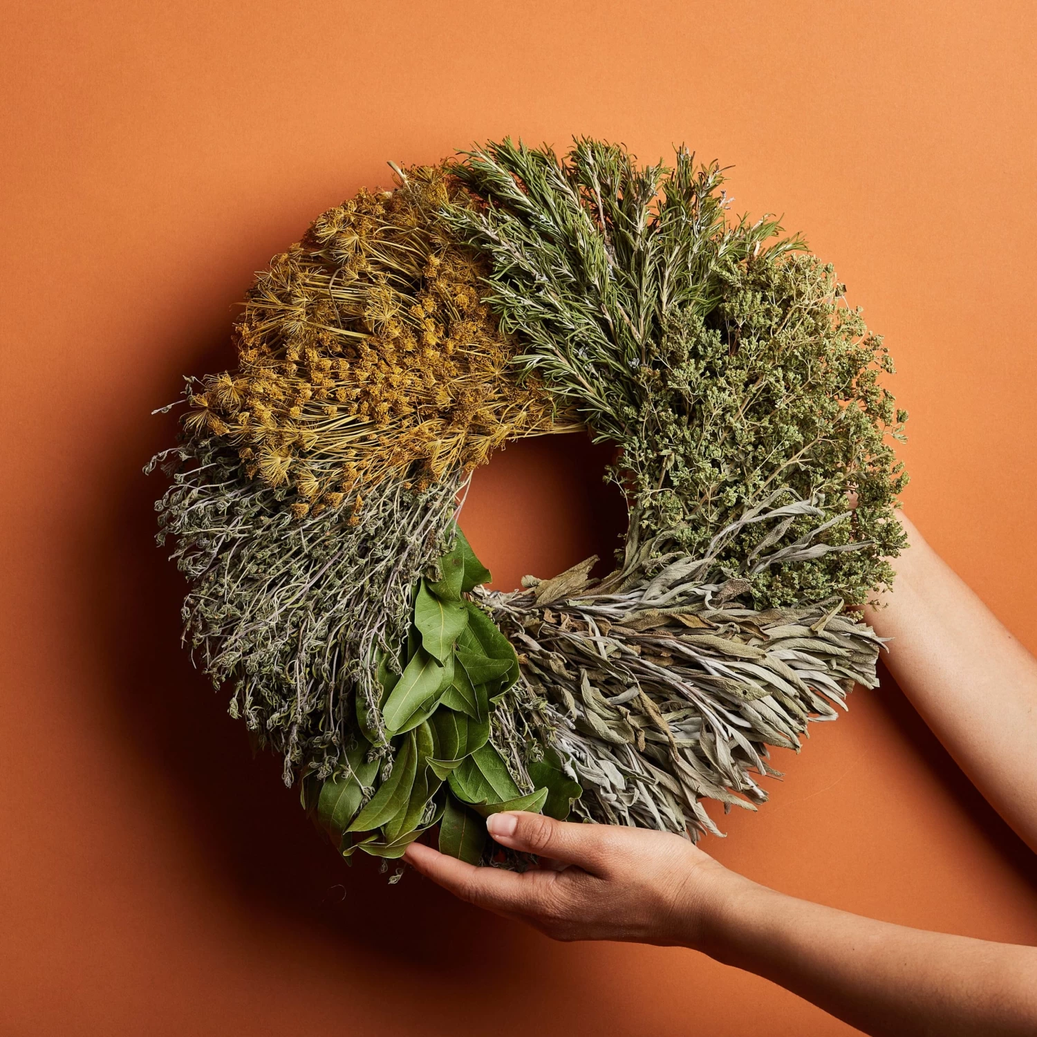 Place of Origin: California[/accordion] Care and Use [/title] Use: Designed for indoor use and enjoyment. [/accordions-break] Wreaths are designed for indoor use only; hang on doors, above the fireplace, staircase or in the kitchen to add a fresh, festive element to any room during the holidays. Use the dried herbs anywhere you want to add a flavor boost: add them to soups, stews and braises, or use them to infuse olive oils or vinegar with additional flavor. Customize combinations of the dried herbs in jars for future use; crush herbs and mix with salt for infused salt. [/how-to-use-break]Hang indoors, out of direct sunlight, and away from excess heat or moisture. Once dried, wreaths will last between six months to a year.