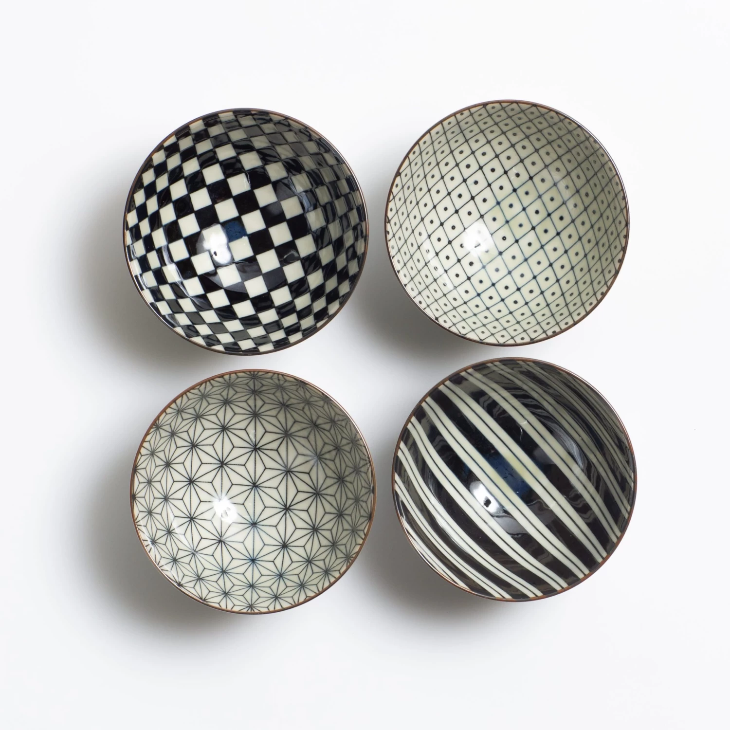 Made in Japan, this set of four stunning ceramic rice or soup bowls give a modern take on the classic Japanese pottery. Each bowl has a unique, abstract pattern in black and white hues and a slightly flared top rim for a simple, elegant design that’s home in both a minimalist or maximalist kitchen.