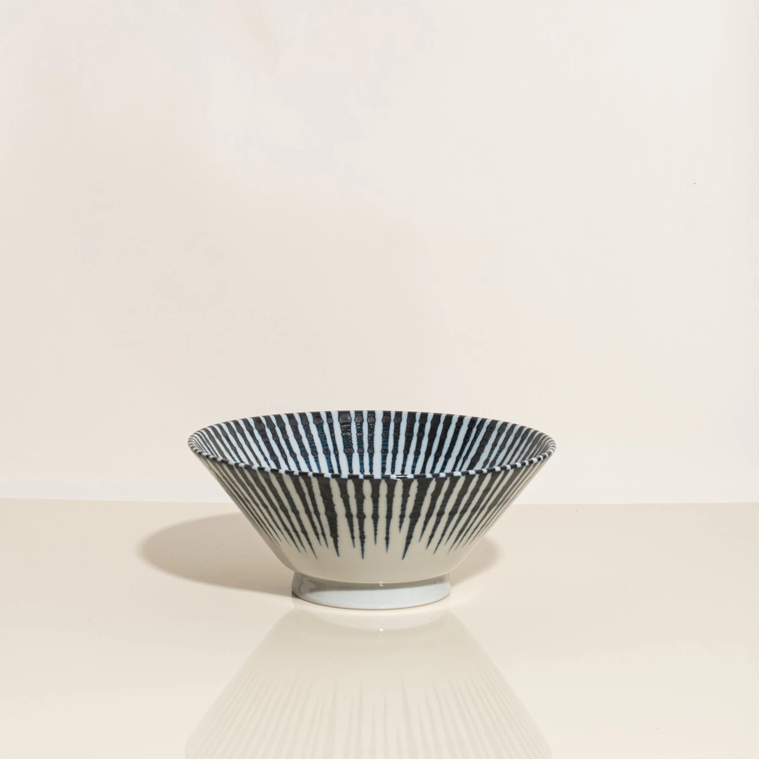 Made in Japan, these bowls are sized for a hearty portion of soup, noodles or ramen. The bowls are glazed in an elegant tokusa pattern, a traditional radiating design inspired by “ten grass,” a varietal of grass that grows in Japan. Mix and match them with other blue and white ceramic pieces from Miya; the bowls are safe for the microwave and the dishwasher. Available in a set of 2.