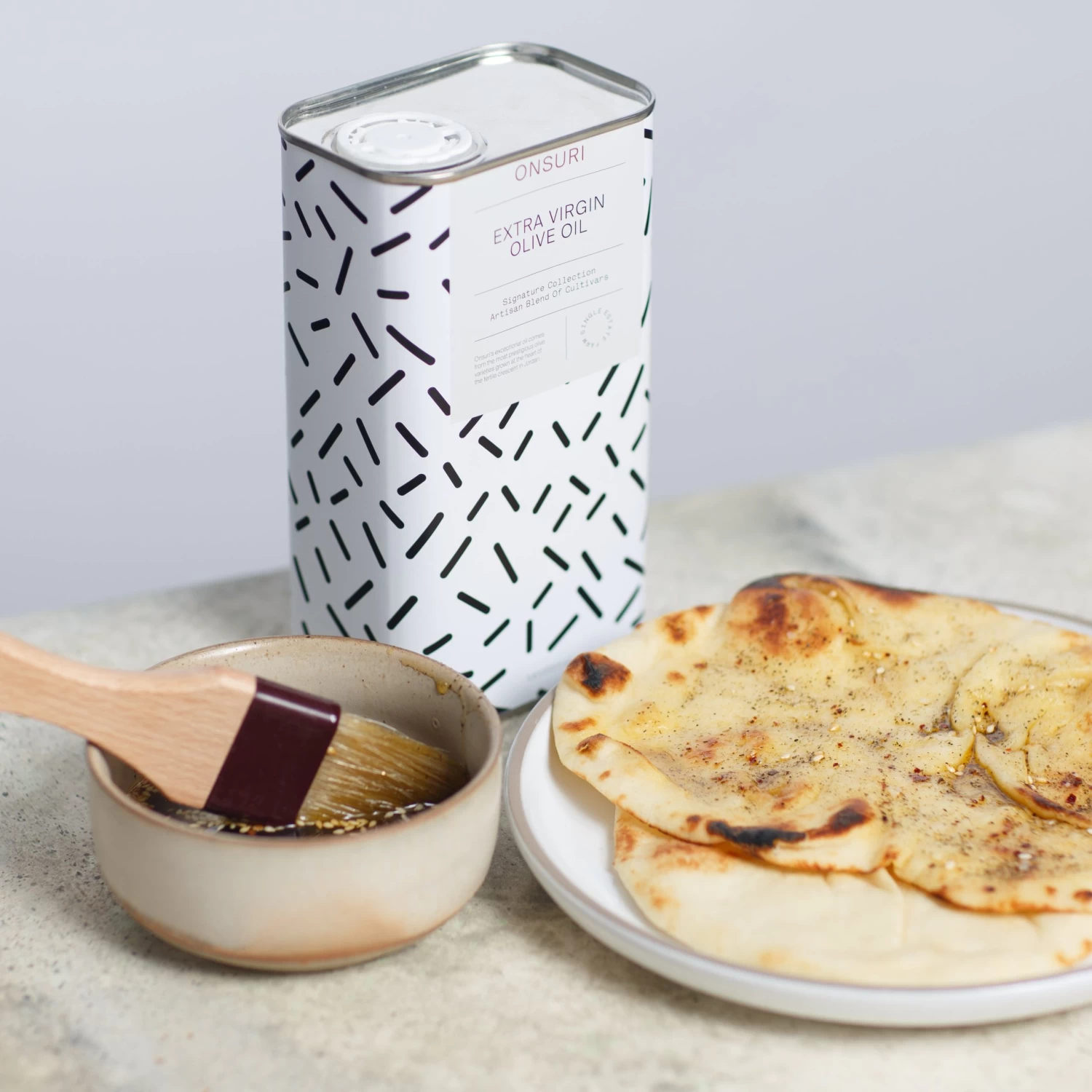 Named Jordan’s “Best Extra Virgin Olive Oil,” Onsuri’s Signature Blend Extra Virgin Olive Oil is rich and buttery with soft grassy notes and a slight finish of pepper at the back of the throat. It’s mild enough to use for everyday cooking but contains sweet buttery notes that also make it ideal as a finishing oil. And at a comparable price point to other EVOO’s in the supermarket, you’ll get award-winning quality and flavor without sacrificing your wallet. Owner Ziad Bilbeisi designed this oil for everyday use. He imported trees of Europe’s most prestigious olive varieties—Greek Koroneiki, and Spanish Arbequina and Arbosana—and planted them alongside local Nabali olive trees. Once ripe, the olives are picked and pressed within hours. The rugged landscape of Bilbeisi’s 300-acre, solar-powered family farm in Jordan makes for fruity, aromatic and intense olives and even better olive oil.