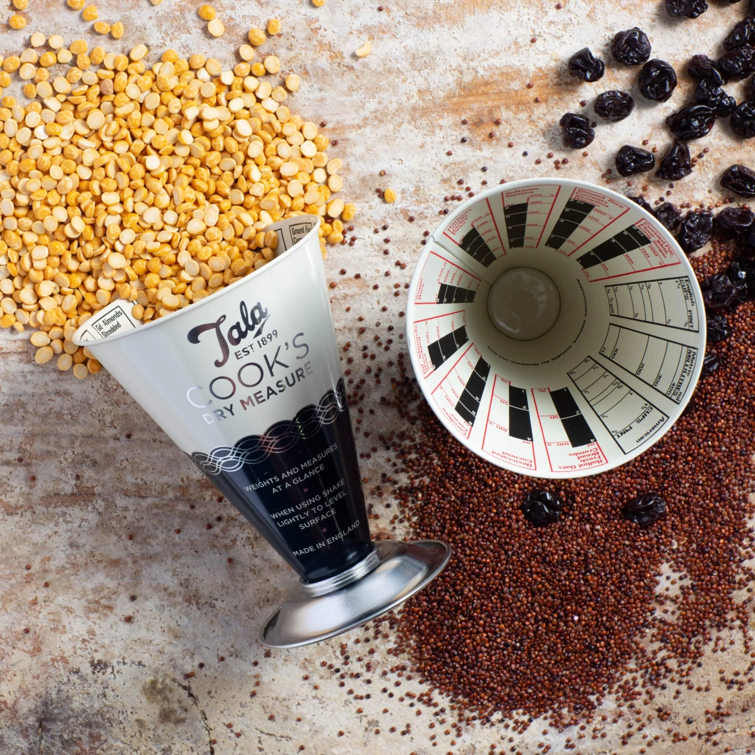 Place of Origin: Liverpool, England[/accordion] Care and Use [/title]Care: Hand-wash, dry immediately.[/accordions-break]These measure cups have over a century of history behind them. [/banner_heading]Tala has been producing baking and decorating equipment since 1899 in England. Their small and highly skilled team has worked with the same machinery since the 1920s to supply cooks and bakers across the world. [/banner-text-break]Use to measure out wet and dry ingredients accurately, as well as level out dry ingredients by shaking.[/how-to-use-break]Hand wash recommended. Measure liquids only for immediate use, cup is not watertight.