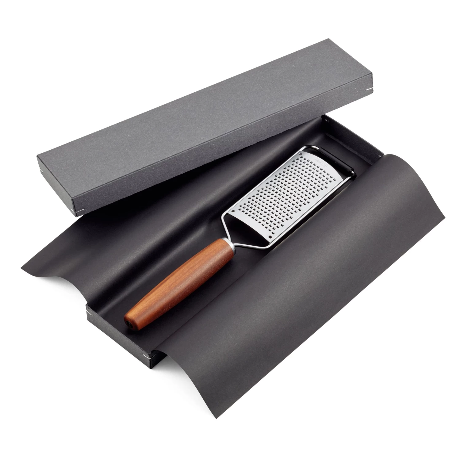 This cheese grater comes from triangle Tools’ Soul line, a series of high-quality kitchen tools developed for design lovers and gourmands alike. The grater comes with super-sharp teeth designed with a photo-etching process, a method that involves using photosensitive film and an acid bath to precisely dissolve a stainless steel sheet to produce the teeth, which behave like knives rather than simply ripping up food. The grater’s handle is made from smooth cherry, plum or walnut wood sourced from local orchards and forests; the handles are carved in nearby Sauerland before being fitted with the stainless steel grate in Solingen—a region of Germany famous for knives, kitchen tools and flatware—with renewably sourced electricity. This grater comes in a reusable gift box, ideal for last-minute gifting or (spoiling the chef in your life).
