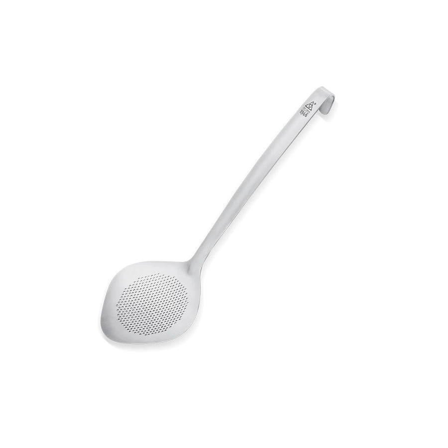 With its soft diamond shape and finer holes, the Fine Skimmer 1946 from triangle Tools is designed for finer tasks than its larger cousin. While it will also drain liquids with zero clogs, this fine skimmer spans the gap between a larger spider and a mesh skimmer. We love it for the in-between tasks, like blanching finely chopped vegetables and skimming small particles from boiling liquid (without having to break out a hard-to-clean mesh option). Like all of triangle Tools’ designs, the skimmer is sturdy enough to withstand the wear and tear of the busiest kitchen: It’s constructed with brushed 18/10 stainless steel, the industry gold standard for strength and quality. Use the hooked end of the handle to store the skimmer easily or hang it from the edge of the pot.