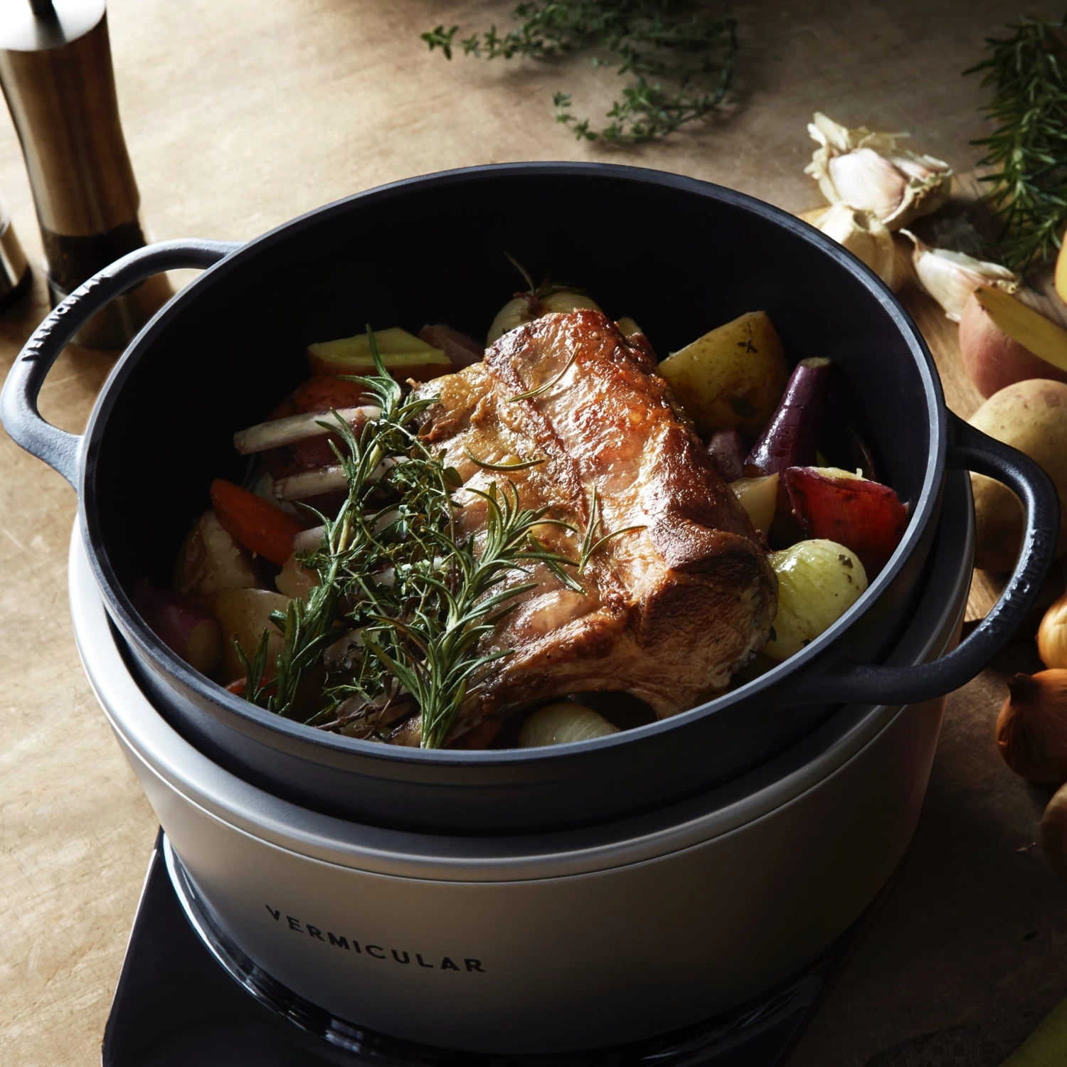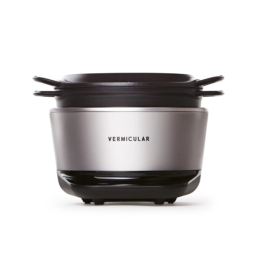 Care: Hand-wash recommended. Avoid metal cooking tools while cooking and abrasive products while cleaning. Rims are not enamel-coated and can potentially rust, so be sure to dry thoroughly after washing. [/accordions-break] Hotter and faster, that’s the trick.[/banner_heading]The thin, lightweight design of the Vermicular Musui starts with a proprietary alloy of graphite iron and other metals heated to 2700℉—hotter than most brands—and then poured into sand molds in a few seconds—a fraction of the time of other brands—to ensure durability for such an even product. Next, a tight-fitting seal between the pot and lid is created thanks to hand-machining the edges to less than 0.01 millimeter of variance. Finally, the Musui is coated in enamel three times before it is ready for use. [/banner-text-break] The Musui-Kamado can cook just about anything, use simply to steam-roast vegetables, sear and then braise meat, or cook the perfect pot of rice (thanks to a built-in function). Try with our Braised Ginger Chicken or Curried Chickpeas with Cilantro and Scallions. Or, just choose the proper temperature to sous vide, poach, confit, proof or ferment. Visit Vermicular for more recipes. [/how-to-use-break]Compatible with all stovetops and safe for oven use up to 570℉. Hand-wash recommended. Avoid metal cooking tools while cooking and abrasive products while cleaning. Rims are not enamel-coated and can potentially rust, be sure to dry thoroughly after washing.