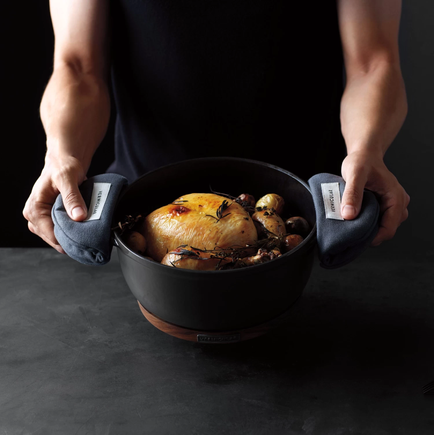 Materials: Enameled cast iron[/accordion] Care and Use [/title]Compatible with all stovetops and safe for oven use up to 570 degrees Fahrenheit. Hand-wash recommended. Avoid metal cooking tools while cooking and abrasive products while cleaning. Rims are not enamel-coated and can potentially rust, so be sure to dry thoroughly after washing. [/accordions-break]Hotter and faster, that’s the trick.[/banner_heading]The thin, lightweight design of the Vermicular Musui starts with a proprietary alloy of graphite iron and other metals heated to 2700 degrees Fahrenheit—hotter than most brands—and then poured into sand molds in a few seconds—a fraction of the time of other brands—to ensure durability for such an even product. Next, a tight-fitting seal between the pot and lid is created thanks to hand-machining the edges to less than 0.01 millimeter of variance. Finally, the Musui is coated in enamel three times before it is ready for use.[/banner-text-break]Use as you would any dutch oven. Or insert into the Vermicular Kamado for precision cooking.[/how-to-use-break]Compatible with all stovetops and safe for oven use up to 570 degrees Fahrenheit. Hand-wash recommended. Avoid metal cooking tools while cooking and abrasive products while cleaning. Rims are not enamel-coated and can potentially rust, be sure to dry thoroughly after washing.