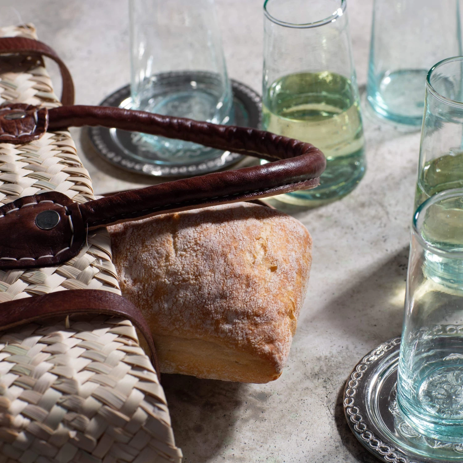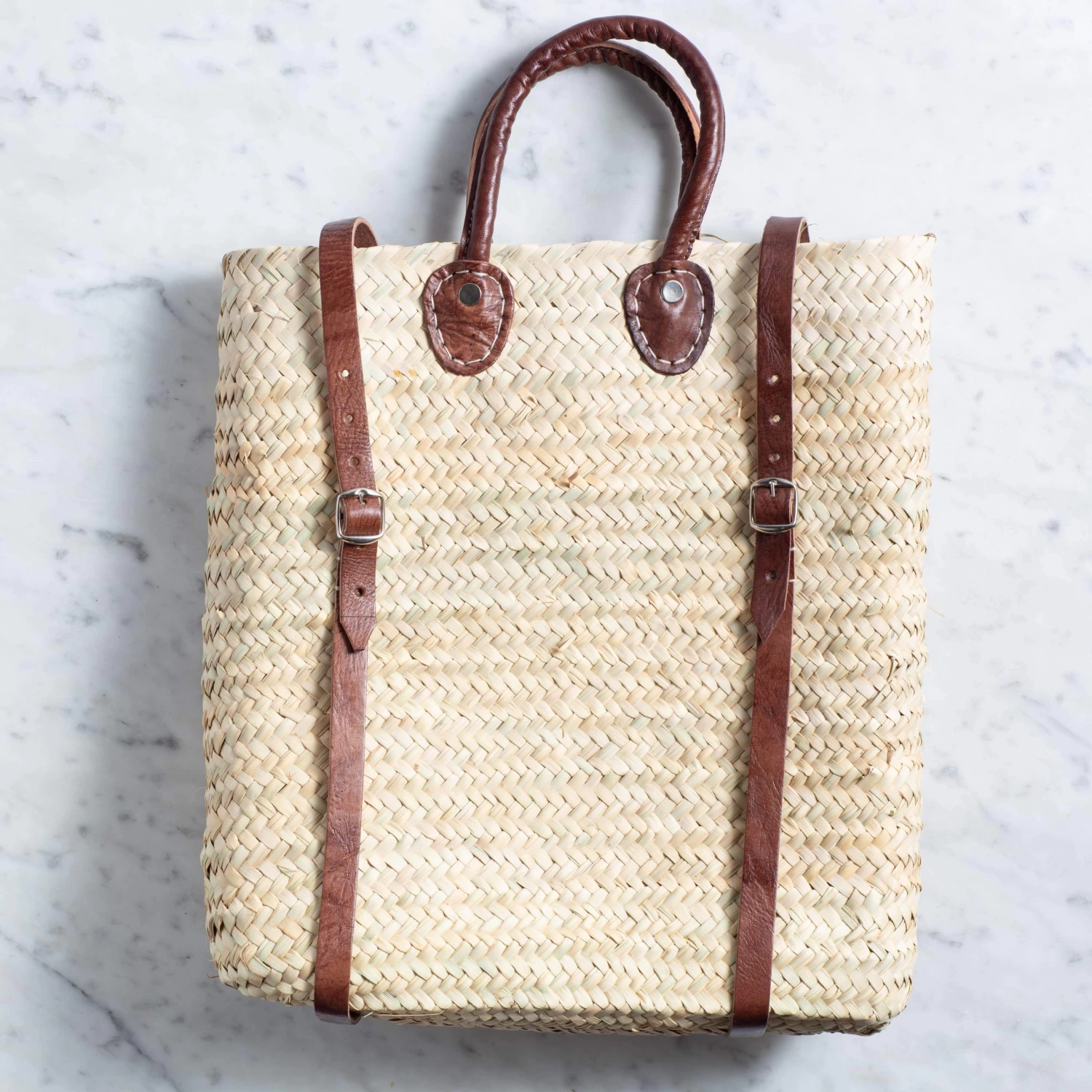 Style meets practicality with the woven Market Tote Backpack, a shopping basket that can be worn as a backpack (with adjustable straps!) or carried using the two leather handles at the top. Even better, there is an interior lining and pull cord to cover your purchases and protect them from the elements. Made with Dwarf Palm from the Fez region, artisans hand weave the material before it is finished by leather workers in Marrakesh. Wear it as a backpack (with adjustable straps!) or carry it using the two leather handles at the top. Carry your farmers market haul or picnic just about anywhere with the help of this handy pack.