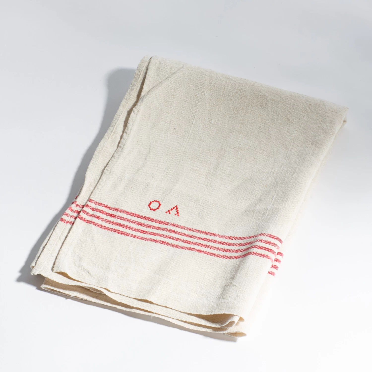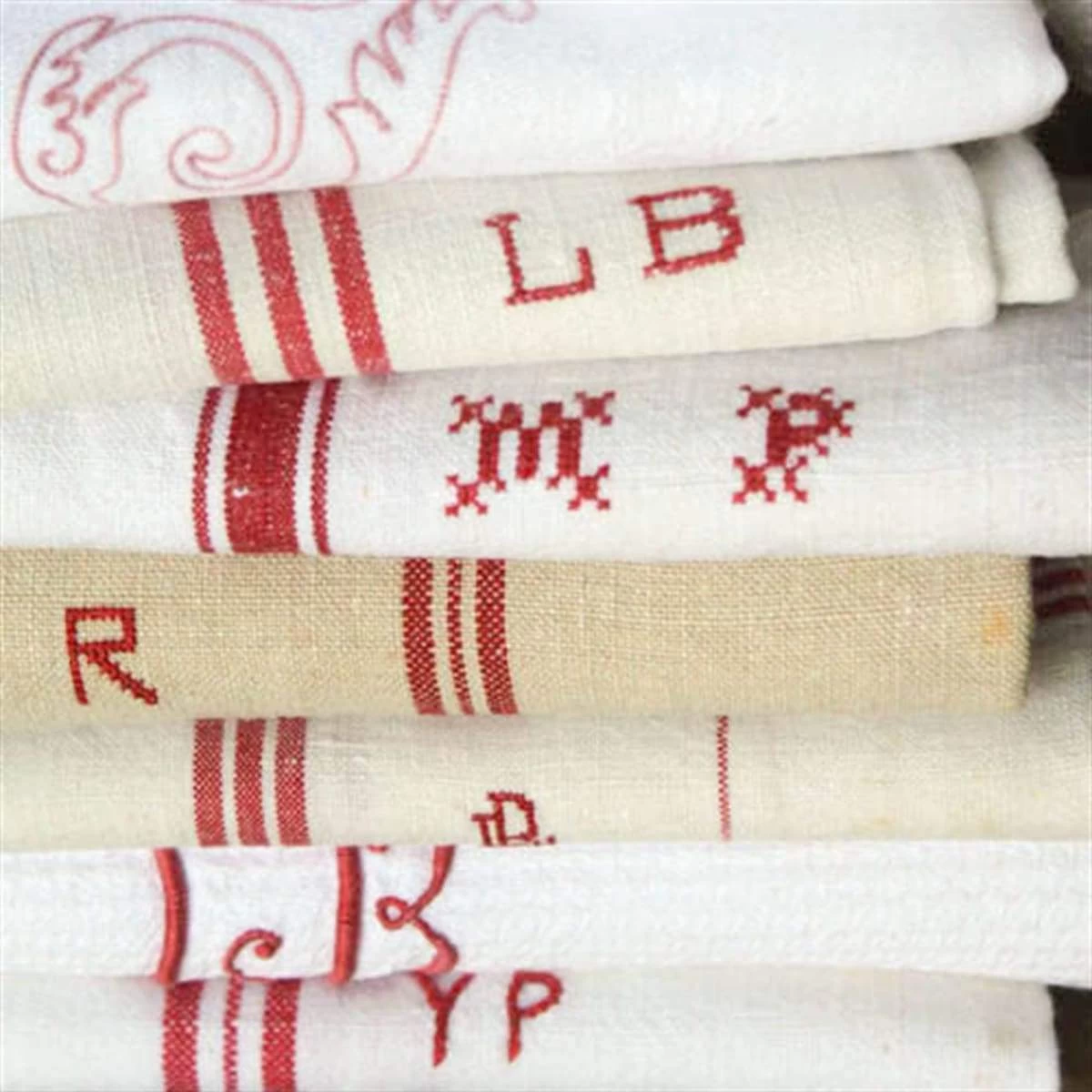 Collected from flea markets and brocantes—French for second-hand shops—these beautiful vintage kitchen towels are made of linen or cotton and hand embroidered. Each towel set is one of a kind, so one may have a monogram and the other may not. Please note each product is one of a kind–items received may vary from those pictured