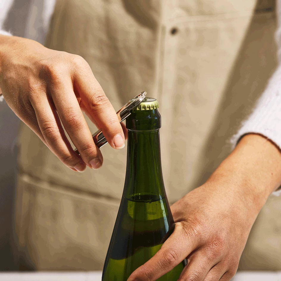 Made from high-quality steel and silicone, this tool from German company Westmark pulls double-duty as a bottle opener and closer. Compact in design and easy to hold in your hand, use it first to open bottles and twist caps, then slide the bottom rubber back over your unfinished drink—it acts like a bottle stopper to create a tight seal. Our testers were blown away with how well the rubber bottom worked to keep drinks fizzy, even after long periods of time. After a week in the fridge with the Westmark covering it, our sparkling apple cider was still just as fizzy as the day it was opened.