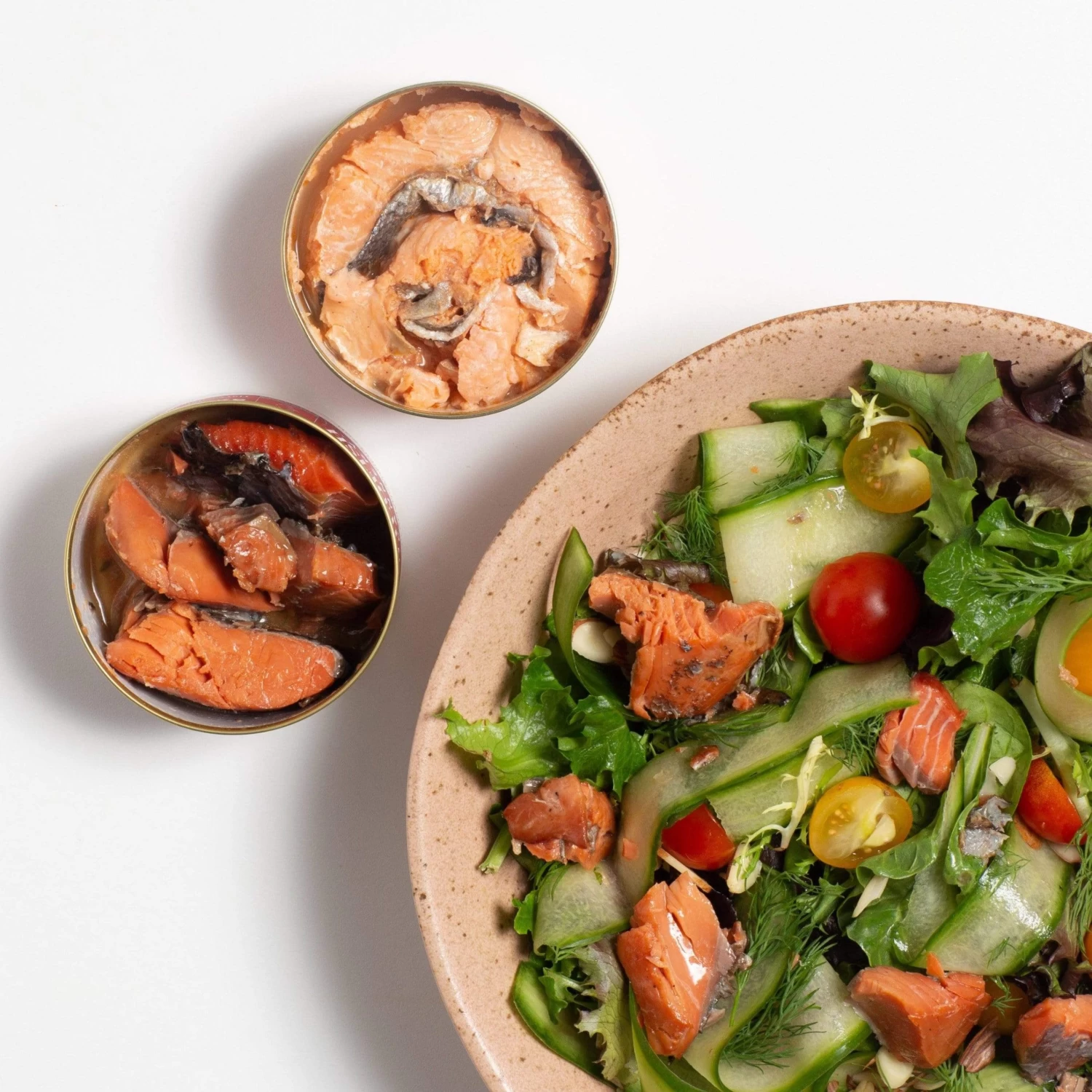 Place of Origin: Southeast Alaska, U.S.A.[/accordions-break] Alaska’s fish canning tradition hearkens back to the turn of the century. [/banner_heading] When large quantities of fish were harvested, canning was the only solution available to keep it fresh before refrigeration was invented in 1913. Now, family-owned Wildfish cannery carries on that tradition from the small island town of Klawock, where the first salmon cannery was established nearly 100 years ago. The producer partners with local fisherman from community-based fisheries to get salmon at peak harvest time before the fish is hand-sliced thick and brined in aromatics. Then it’s packed with care by hand. [/banner-text-break] With its brilliant color, this sockeye should be the featured food on your plate. Locals up in Alaska enjoy it with rice and a shake of furikake, but it’s also wonderful in seafood soups and chowders, noodle dishes and even with eggs: Try adding it to a breakfast frittata or folding it into soft curds of scrambled eggs. Flake the salmon into a salad with some watercress, avocado, pumpkin seeds and cloudy apple cider vinegar. The lush avocado complements the rich salmon, both of which are balanced by the acid. The greens add freshness, while the pumpkin seeds lend texture. Toss with spaghetti, garlic, tomato and herbs. And while the salmon is of course a wonderful addition to any dish, we truly think the flavorful meat can hold its own. It needs little more than a quality cracker, sprig of dill and slice of cucumber. [/how-to-use-break]Start to finish: 30 minutes