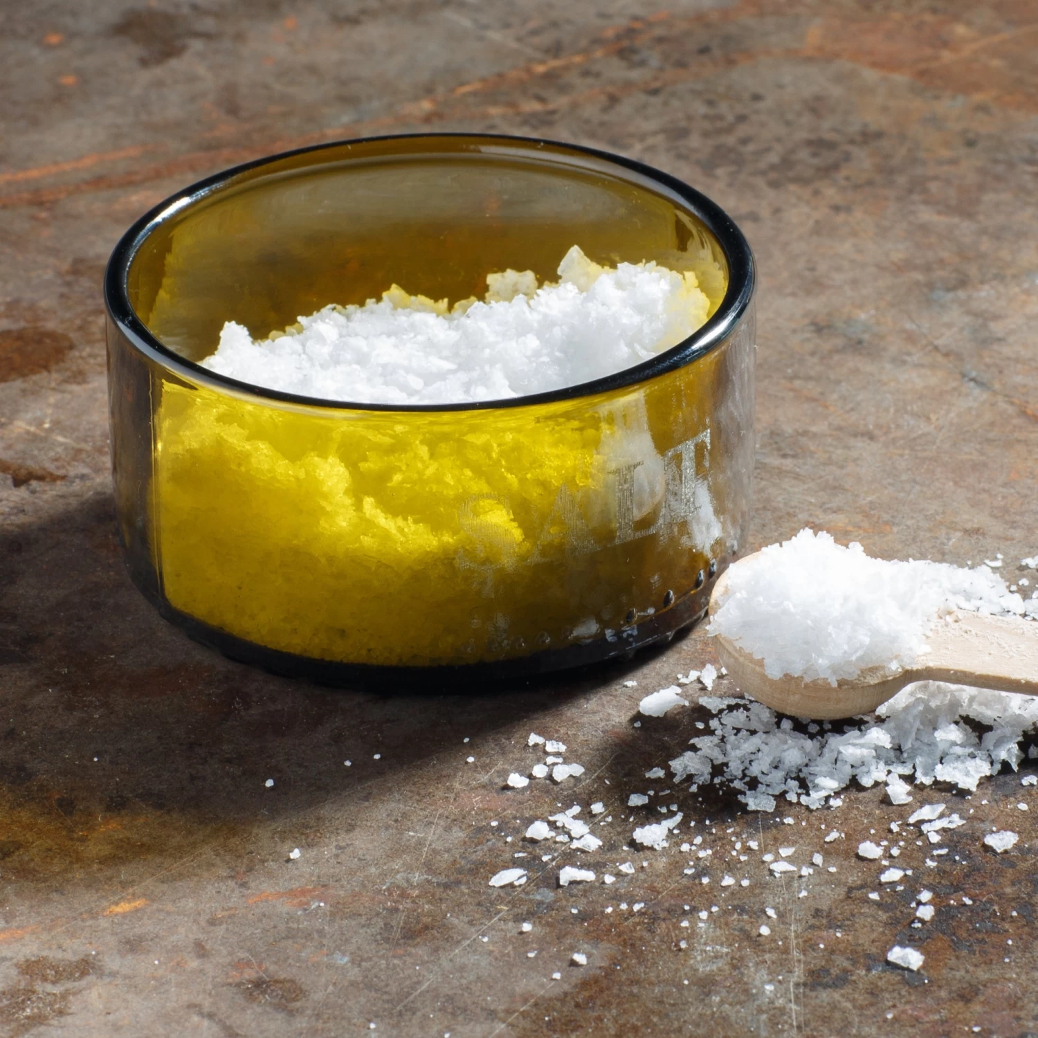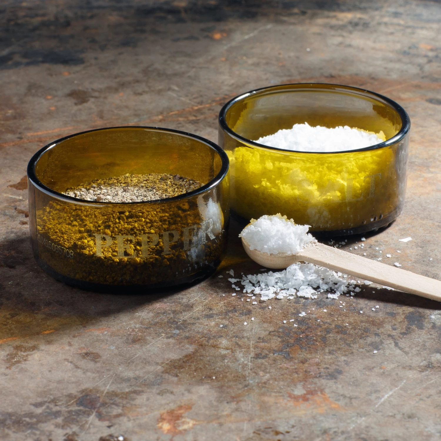 Named for the dimpled indent at the bottom of your wine bottle, Colorado-based company Wine Punts makes these beautiful salt and pepper cellars with elegantly rustic etched labels out of recycled wine bottles. And they’re sold exclusively at Milk Street! The company partners with local restaurants and hotels to save tens of thousands of glass bottles per year from crowding our landfills. Artisans saw off the neck of the bottles then fire-polish and inspect every Wine Punts piece to ensure a seamless, smooth rim that’s wide enough to grab a pinch of salt or pepper while cooking. Each Wine Punts product has its own personality, from slight variations in diameter and hue to the patterned ridges on the bottom.