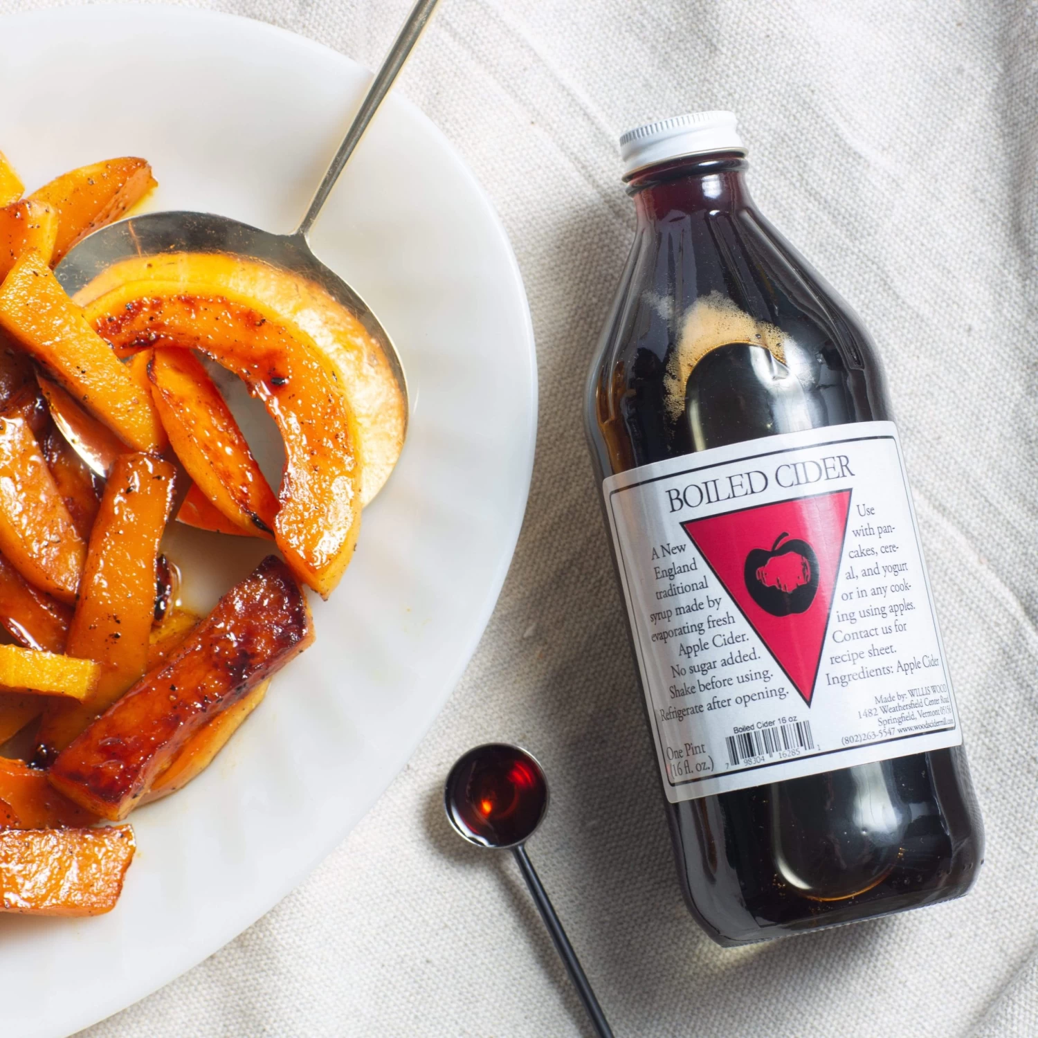 Place of Origin: Vermont[/accordions-break]The Aldrich family has been boiling cider at their Wood’s Cider Mill in Weathersfield, Vermont, since 1882.[/banner_heading]Originally made by a twin-screw cider press run by water power at the mill pond, the small-batch cider is still made on that same press. Now powered by electricity, it produces 200 gallons of cider per pressing that they use in their various products.[/banner-text-break]Use in vinaigrettes, toss with root vegetables, brussel sprouts, or squash before roasting. Try in baking recipes that call for apple cider when a more highly concentrated flavor is desired. Add a few tablespoons to apple pie filling for a stronger apple taste. Mix with powdered sugar for an apple cider glaze for coffee cakes, pound cakes, doughnuts, and other baked goods.[/how-to-use-break] ​KITCHEN NOTES